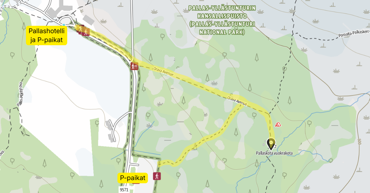 Hotellin P-paikan osoite: Pallastunturintie 560